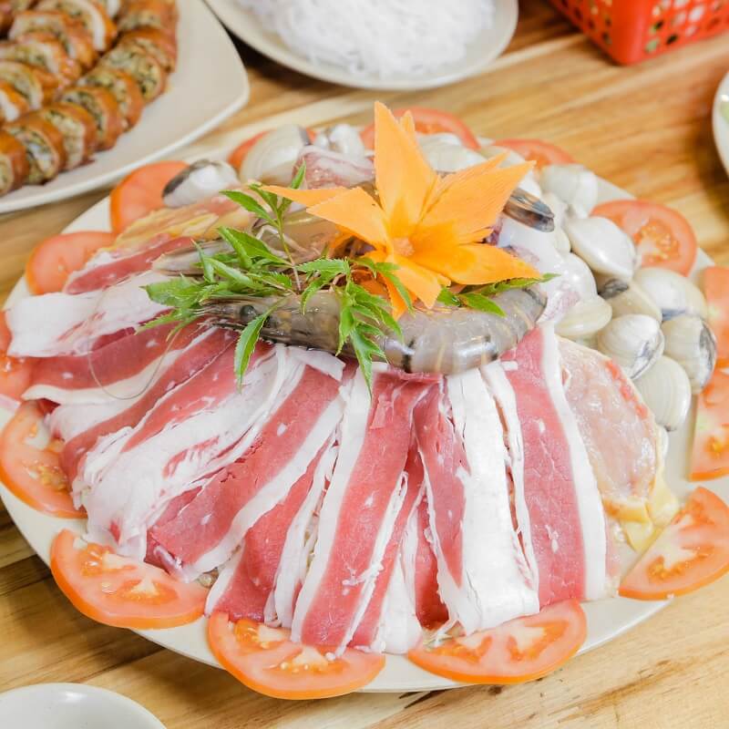 Phần thức ăn nhúng lẩu có thể thay đổi theo sở thích ăn như thêm hải sản, các loại viên nhúng lẩu,…