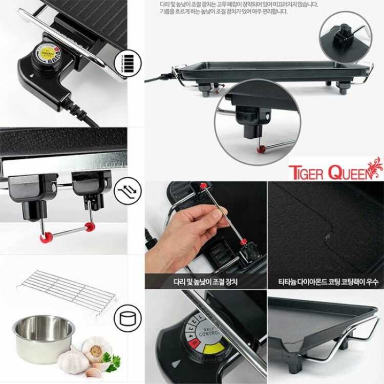 Bàn nướng điện Tiger Queen SQ-1300G nhập khẩu từ Hàn Quốc có thiết kế nhỏ gọn, sang trọng, hiện đại và an toàn luôn luôn có mặt trong mọi không gian nhà bếp. Bên cạnh đó, với cấu tạo từ linh kiện cao cấp, không chứa chất độc hại và chịu nhiệt tốt giữ bàn nướng điện lâu phai màu với độ bền cao theo thời gian sử dụng. Đồng thời, bàn nướng điện Tiger Queen có tích hợp tô đựng canh/soup và rế làm ráo dầu kèm theo sản phẩm tiện lợi cho việc nấu nướng.