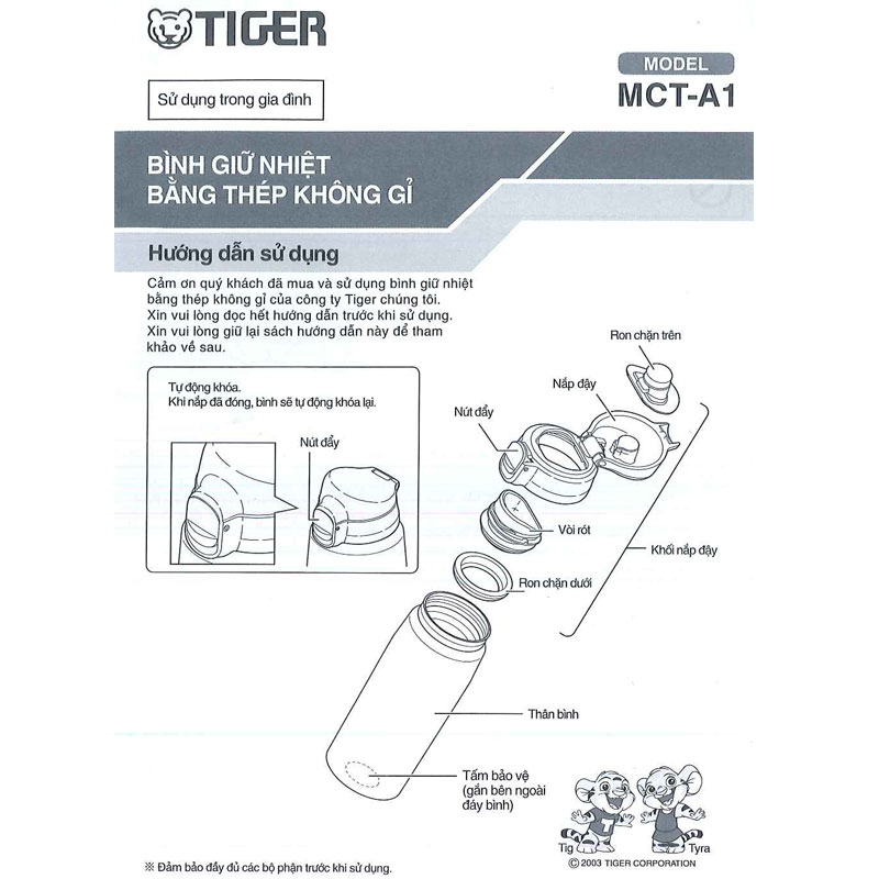 Được nhiều người tiêu dùng yêu mến và lựa chọn, Tập Đoàn Tiger chuyên sản xuất các sản phẩm nhà bếp, gia dụng nói chung và Bình giữ nhiệt Tiger nói riêng là một sự lựa chọn lí tưởng để đựng nước an toàn vệ sinh cũng như cung cấp nước đủ nước cho cơ thể bé hàng ngày và ở bất cứ nơi đâu. Bình giữ nhiệt Tiger MCT-A351 được làm bằng chất liệu thép cao cấp không gỉ với thiết kế theo hình trụ đứng và nhiều hình ảnh màu sắc trẻ trung luôn luôn có mặt trong ba lô hay cặp xách của bé mỗi khi ra đường hay đi học. Với kiểu dáng gọn nhẹ, tiện lợi, dễ dàng bỏ trong balo, cặp xách sẽ là người bạn đồng hành cùng với các bé trong những hoạt động thường nhật hay trong những chuyến dã ngoại.