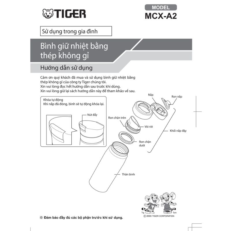 BÌNH GIỮ NHIỆT TIGER NẮP BẬT MCX-A502