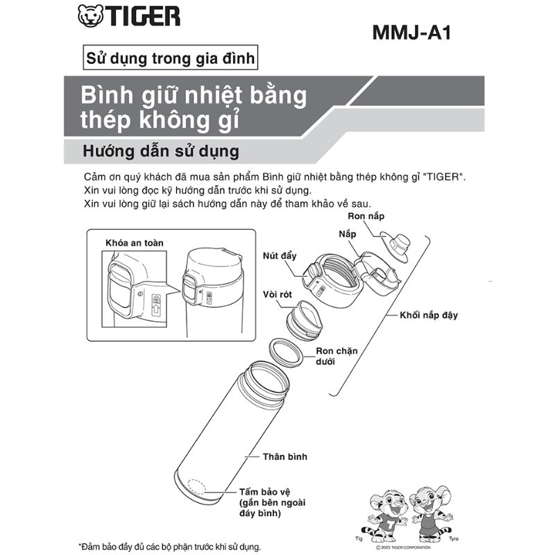 Bình lưỡng tính Tiger MMJ-A601 là sản phẩm không chứa chất gây ung thư “PFOA” luôn luôn an toàn cho người sử dụng. Không chỉ vậy, sản phẩm được thiết kế khóa nắp an toàn và thao tác khóa / mở nắp chỉ bằng một tay với 1 nút nhấn ngăn ngừa rò rỉ nước khi bình bị ngã.