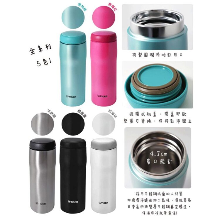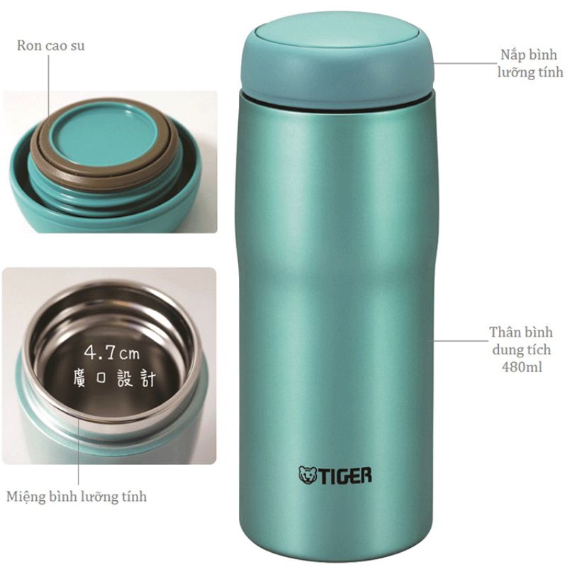 Được nhiều người tiêu dùng yêu mến và lựa chọn, Tập Đoàn Tiger chuyên sản xuất các sản phẩm nhà bếp, gia dụng nói chung và bình lưỡng tính Tiger nói riêng là một sự lựa chọn lí tưởng giúp bạn thưởng thức nước uống yêu thích của mình mọi lúc mọi nơi mà vẫn giữ nguyên hương vị. Bình lưỡng tính Tiger MJA-A048 được làm bằng chất liệu thép cao cấp không gỉ với thiết kế theo hình trụ đứng và nhiều màu sắc trẻ trung luôn luôn có mặt trong mọi không gian nhà bếp cũng như trong túi xách của mỗi người khi ra đường. Với kiểu dáng gọn nhẹ, tiện lợi, dễ dàng bỏ trong balo, túi xách sẽ là người bạn đồng hành cùng với bạn trong những hoạt động thường nhật hay trong những chuyến dã ngoại.
