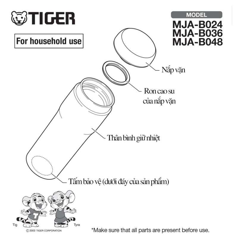 BÌNH LƯỠNG TÍNH TIGER NẮP VẶN MJA-B048
