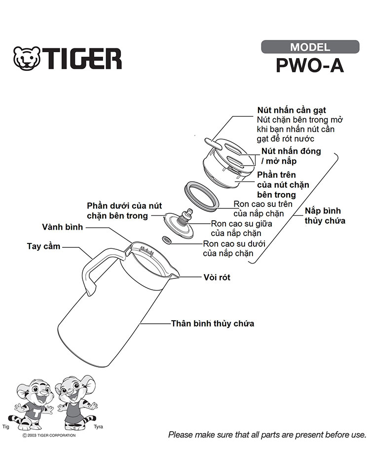 BÌNH THỦY CHỨA RUỘT CHÂN KHÔNG TIGER PWO-A200