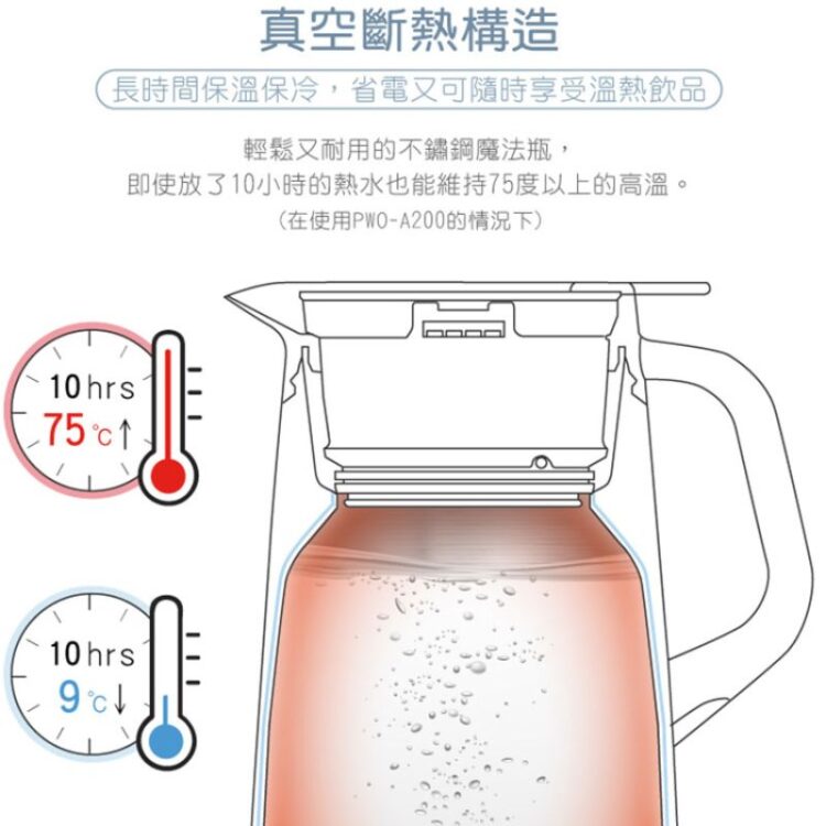 Bình thủy chứa chân không PWO-A200 thu hút ánh nhìn với thiết kế kiểu dáng thanh lịch, hiện đại, gam màu trang nhã góp phần tăng thêm sự sang trọng và nổi bật cho không gian bếp của gia đình bạn. Với thiết kế tay cầm và dung tích 2.0 lít phù hợp với nhu cầu của người sử dụng cũng như khi di chuyển bình. Bên cạnh đó, lớp sơn tĩnh điện giữ bình lâu phai màu và không mau dơ.
