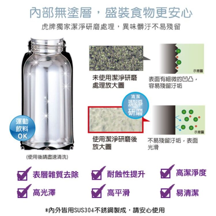 Toàn bộ cấu trúc bình thủy chứa chân không Tiger PWO-A200 làm từ thép không gỉ tiêu chuẩn SUS304 (18/8) được áp dụng công nghệ “Super Clean Plus” chống gỉ sét, chống ăn mòn, chống dính, chống bám bẩn, khử mùi và dễ dàng vệ sinh ngay cả những thức uống dễ để lại vết bám bẩn và mùi như cà phê / trà mà không gây ra những chất độc hại cho sức khỏe của người sử dụng.