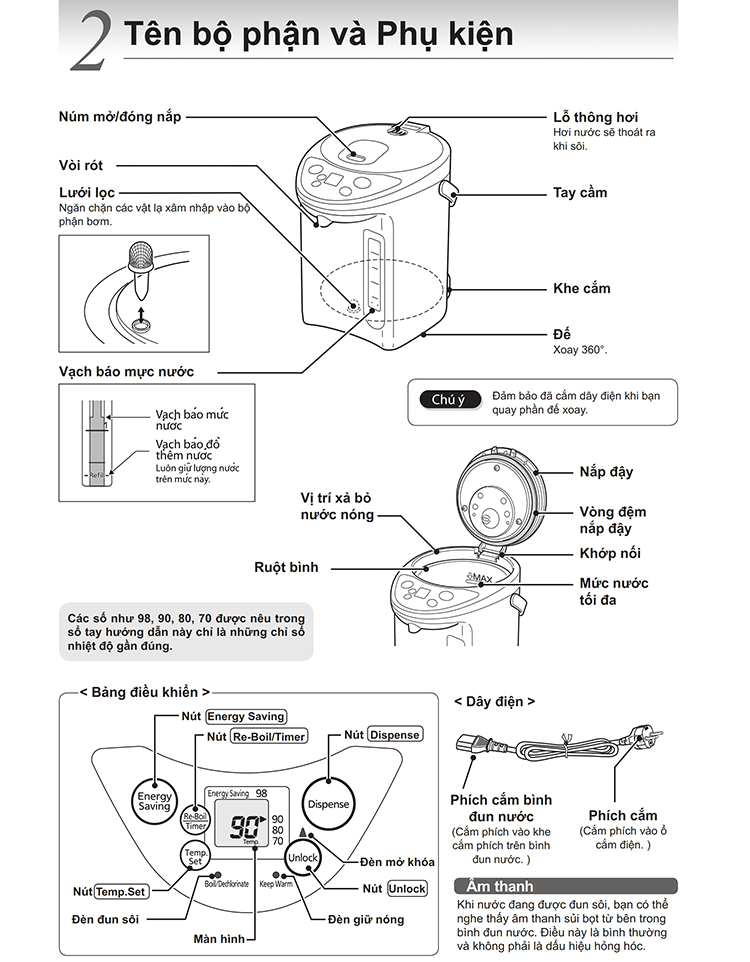 Bình thủy điện tử cao cấp Tiger 4.0 lít PDR-S40W với vẻ ngoài sang trọng, nhỏ gọn cùng thiết kế chất lượng với phần thân nhựa thân thiện môi trường, cứng cáp, bền bỉ và chịu nhiệt tốt. Đồng thời, bình thủy điện tử có tay xách cách nhiệt chắc chắn sẽ giúp bạn dễ dàng với việc cầm nắm, di chuyển bình khi sử dụng. Ngoài ra, với thiết kế đế xoay 360º giúp bạn thuận tiện trong việc rót nước sau khi đun sôi.