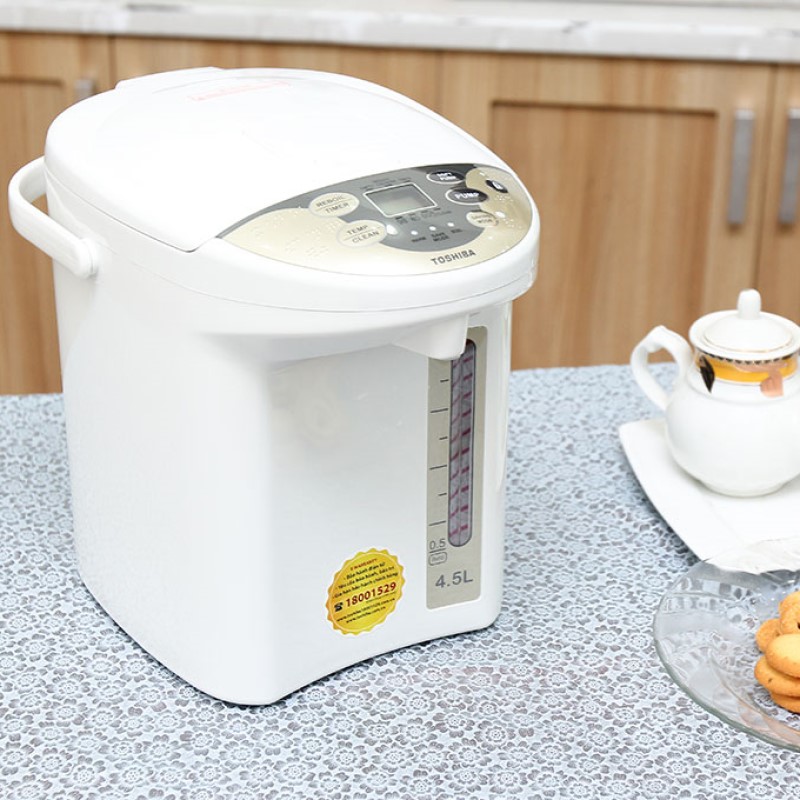 Nhằm đáp ứng nhu cầu nấu và giữ nước nóng lâu tiện lợi để phục vụ những nước uống nhanh và an toàn cho người sử dụng thì Tập Đoàn Toshiba đã cho ra đời những mẫu bình thủy điện tử hiệu Toshiba tại thị trường Việt Nam. Bình thủy điện tử Toshiba 4.5 lít PLK-45SF(WT)VN được làm bằng chất liệu nhựa cao cấp với thiết kế theo hình trụ đứng luôn luôn có mặt trong mọi không gian nhà bếp cũng như văn phòng công ty đáp ứng nhu cầu giữ nước nóng cũng như thuận tiện cho việc cần pha tách trà, cà phê hay ly sữa nóng bất kỳ lúc nào. Không chỉ vậy, kiểu dáng hiện đại cùng nhiều màu sắc đẹp mắt góp phần tăng thêm sự sang trọng và nổi bật cho không gian bếp gia đình bạn hay văn phòng công ty.