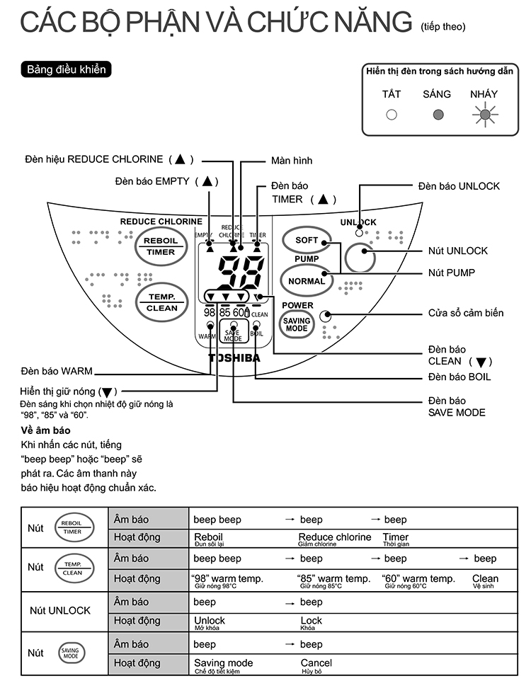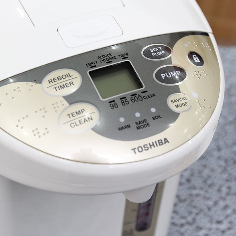 Bình thủy điện tử Toshiba PLK-45SF(WT)VN với thiết kế bảng điều khiển điện tử kèm màn hình LCD hiện đại dễ dàng sử dụng tích hợp nhiều tính năng tiện lợi cho bạn như chức năng nấu sôi lại và chức năng nấu khử mùi Clo trong nước đảm bảo sức khỏe cho cả gia đình bạn. Hơn thế nữa, Toshiba cũng tích hợp 3 chế độ cài đặt nhiệt độ giữ ấm “98ºC, 85ºC & 60ºC“ phù hợp với từng loại nước uống để pha chế.