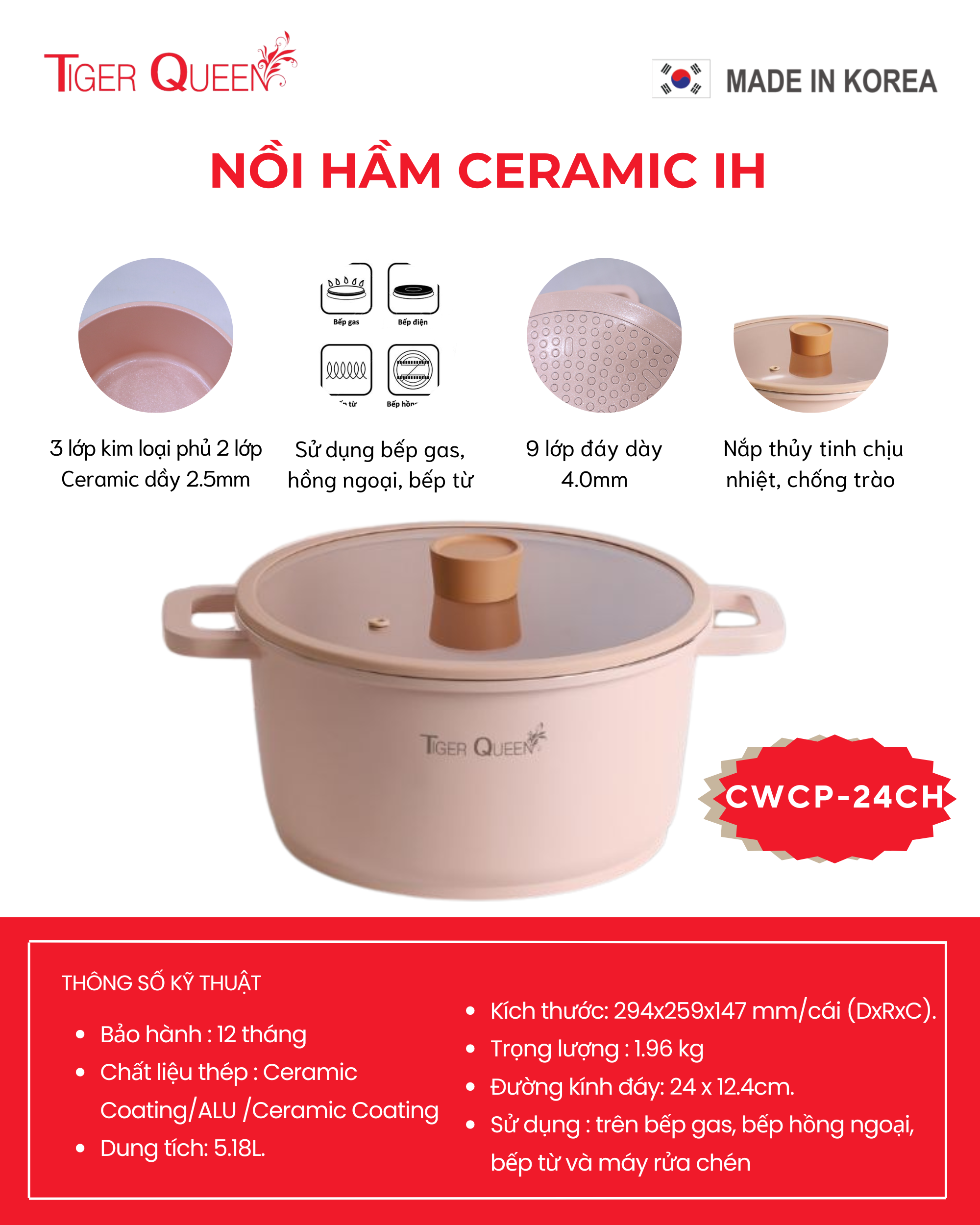 • Link chi tiết sản phẩm : https://bepnhatoi.com/san-pham/noi-ham-ceramic-ih-hieu-tiger-queen-cwcp-24ch-24cm-5-18l/