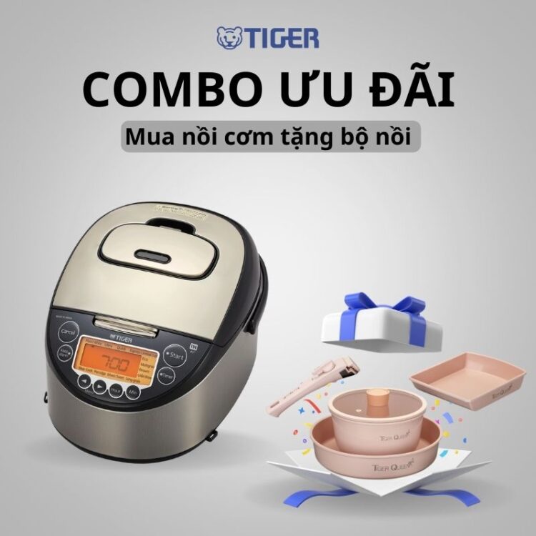Nồi cơm điện tử cao tần hiệu Tiger 2 trong 1 với 12 chế độ nấu, lồng 3 lớp kim loại được phủ 3 lớp men gốm “Cordierite Ceramic” chống dính bằng tia hồng ngoại dầy 1.5mm, công nghệ từ tính (IH) giúp hạt cơm thơm ngon & tiết kiệm điện cùng với thiết kế 3 vòng nhiệt giúp cơm chín nhanh hơn mà hạt cơm không bị nát và không bị khô trong quá trình giữ ấm cơm, với công nghệ nấu cơm siêu tốc “Express-Limited Cups” mới nhất được tích hợp để nấu chín 1 – 3 cốc gạo (2 – 6 chén cơm) trong vòng 17 – 26 phút khi bạn cần nấu thêm cơm nhanh hay bạn chỉ nấu cho một khẩu phần ăn, màn hình LCD điều chỉnh thông minh, có chức năng báo không có lồng nồi, 2 chế độ hẹn giờ nấu, có quai xách, cốc đong gạo, muỗng xới cơm, muỗng múc cháo/soup, các thực đơn nấu ăn trong sách hướng dẫn sử dụng kèm theo sản phẩm, chức năng giữ ấm cơm đến 24h, màu Inox viền đen bạc.