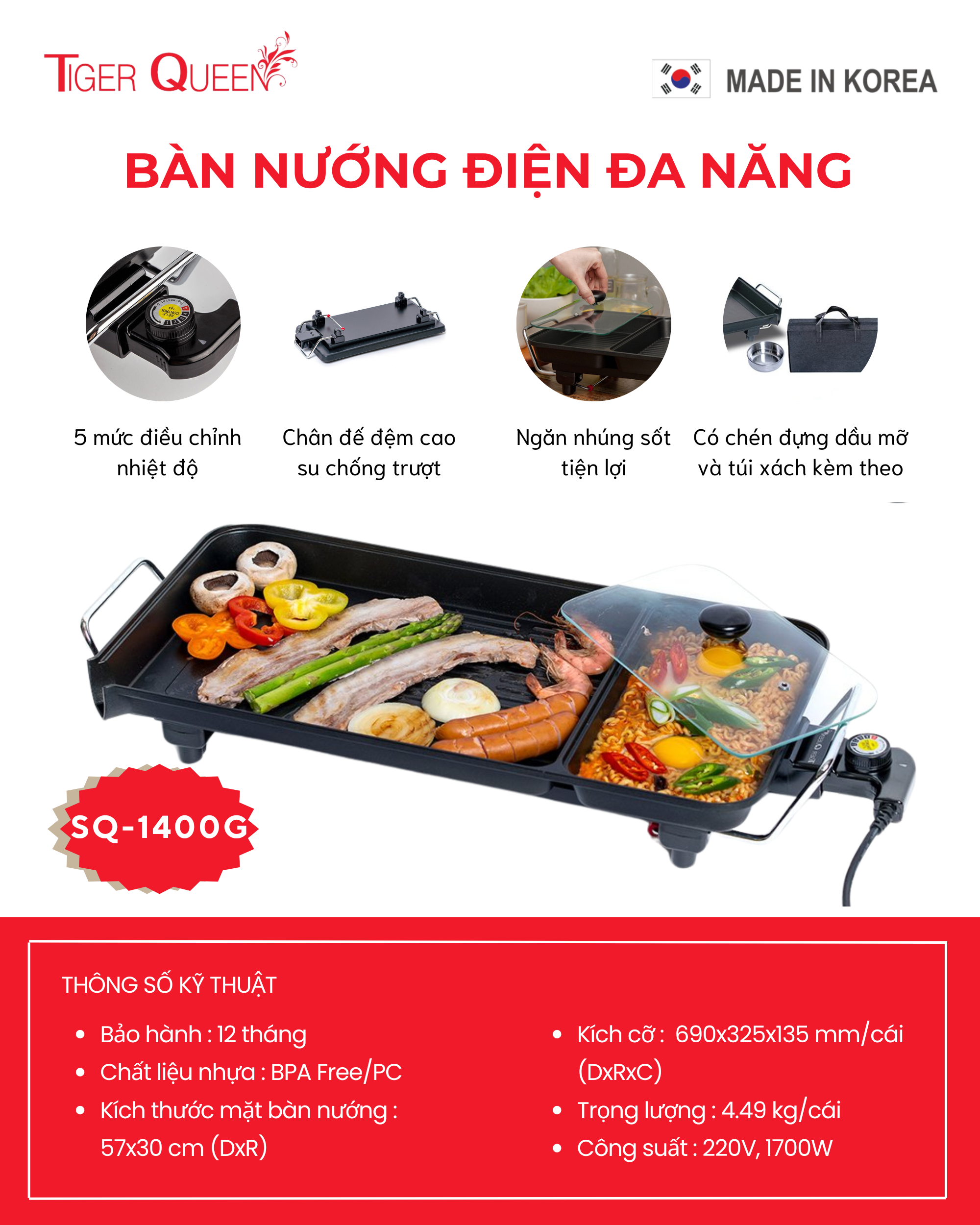 BÀN NƯỚNG ĐIỆN TIGER QUEEEN SQ-1400G
