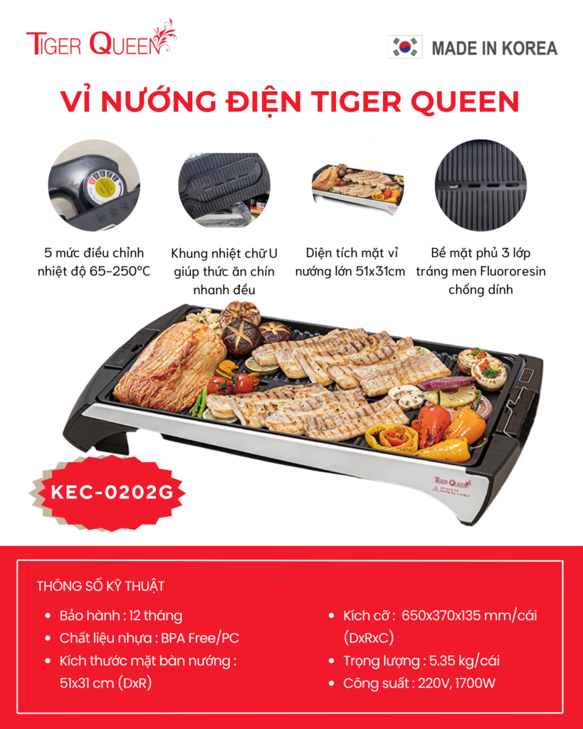 • Link chi tiết sản phẩm : https://bepnhatoi.com/san-pham/vi-nuong-dien-tiger-queen-kec-0202g-51cm/