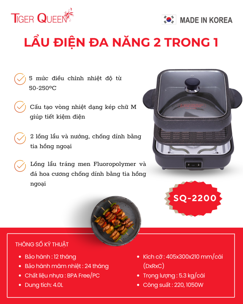 • Link chi tiết sản phẩm : https://bepnhatoi.com/san-pham/lau-dien-tiger-queen-2-trong-1-sq-2200-4-0l/