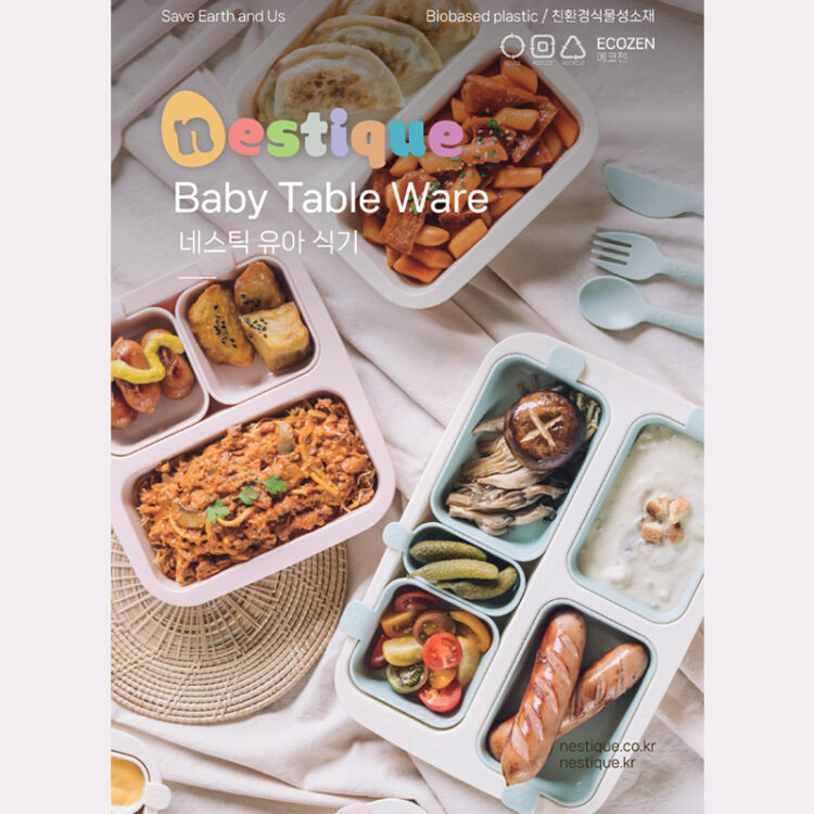 Khay ăn trẻ em cao cấp hiệu Nestique N-11 được làm từ nguyên liệu ECOZEN (có nguồn gốc thực vật chiết xuất từ ngũ cốc như ngô, lúa mì) được chứng nhận BIOMASS và đạt tiêu chuẩn vàng thế giới C2C, một vật liệu thân thiện với môi trường và con người là co-polyester trong suốt làm từ sinh khối với ưu điểm là khả năng chịu nhiệt cao và không thải ra các hormone môi trường gây ung thư.