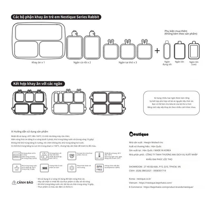 Giai đoạn ăn dặm rất quan trọng đối với bé yêu của các mẹ bỉm sữa, cách ăn uống cho bé khoa học, hợp lý và dụng cụ ăn uống cũng cần được đảm bảo an toàn và không chứa chất độc hại. Vì vậy, hiểu rõ cảm giác lo ngại, phân vân của các mẹ về chất lượng các sản phẩm dành cho trẻ em trên thị trường thì THƯƠNG HIỆU NESTIQUE đến từ Hàn Quốc chuyên sản xuất các bộ dụng cụ ăn uống cho trẻ em và cho tất cả mọi người nói chung đã cho ra đời những mẫu Khay ăn trẻ em hiệu Nestique thân thiện với môi trường và an toàn cho sức khỏe. Khay ăn trẻ em cao cấp 5 ngăn hiệu Nestique N-11-1 được làm từ nhựa Polyalkyl Terephthalat (PET) đạt tiêu chuẩn quốc tế FDA (Mỹ) và KFDA (Hàn Quốc) từ nguyên liệu thân thiện môi trường ECOZEN được chứng nhận BIOMAX và đạt tiêu chuẩn vàng thế giới C2C không chứa chất độc hại BPA Free, không bám mùi, bám màu thực phẩm, kháng hóa chất nên tuyệt đối an toàn cho sức khỏe của bé. Thiết kế nhỏ gọn, bền bỉ, nhiều màu sắc trang nhã, hiện đại và dễ thương luôn luôn là bạn đồng hành với bé trong mỗi bữa ăn cũng như tạo cảm giác cho bé ăn ngon hơn và ăn được nhiều hơn.