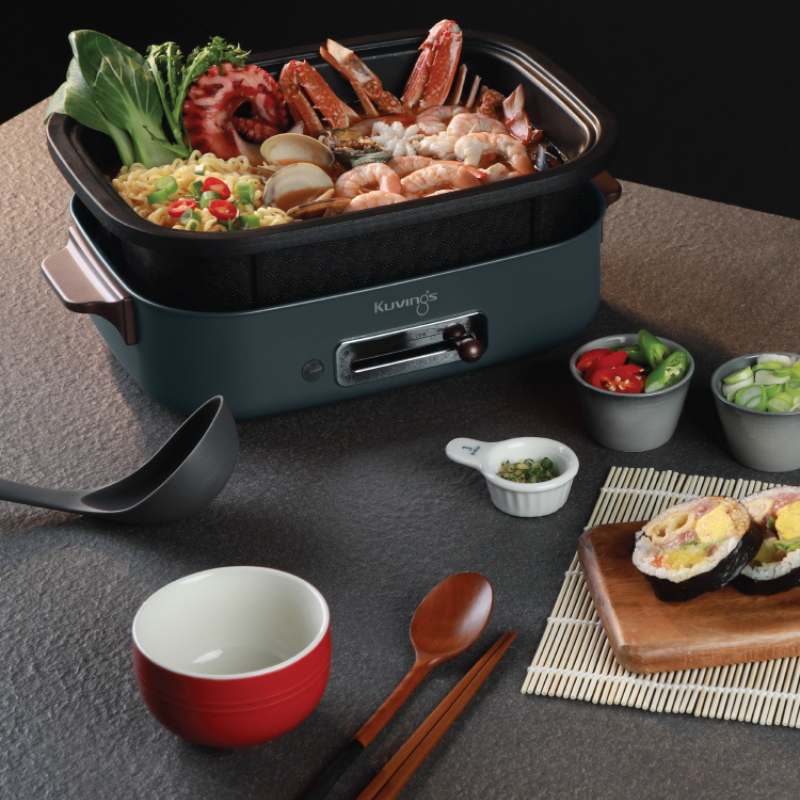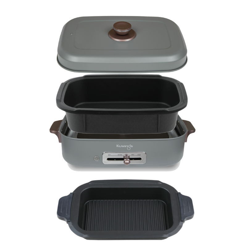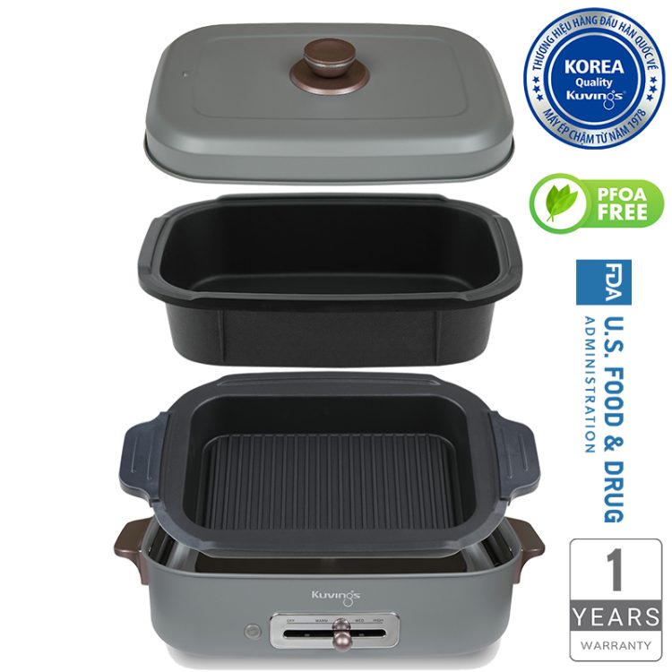 Nhằm đáp ứng sở thích ăn các món nướng và lẩu tại nhà mà không chứa nhiều dầu mỡ và an toàn cho người sử dụng. Thương hiệu Kuvings đã cho ra đời những mẫu Lẩu điện phủ gốm Ceramic đa năng hiệu Kuvings cao cấp tại thị trường Việt Nam. Lẩu điện phủ gốm Ceramic đa năng Kuvings 2 trong 1 KMG-200B được sản xuất từ linh kiện cao cấp có độ bền cao không chứa chất độc hại. Thiết kế nhỏ gọn, sang trọng, hiện đại và an toàn theo phong cách “Newtro”. Hơn thế nữa, với công nghệ phủ lớp gốm “Ceramic” chống dính bằng tia hồng ngoạ. Giúp cho bề mặt lồng lẩu điện khả năng chịu nhiệt cao, chống trầy xước, chống dính. Thức ăn chín đều nhanh mà không bị khét, không tạo khói và không cần sử dụng nhiều dầu mỡ. Đây là một sự lựa chọn lý tưởng giúp bạn chế biến và thưởng thức những món nướng, xào, hấp và lẩu yêu thích ngay tại bàn ăn gia đình.