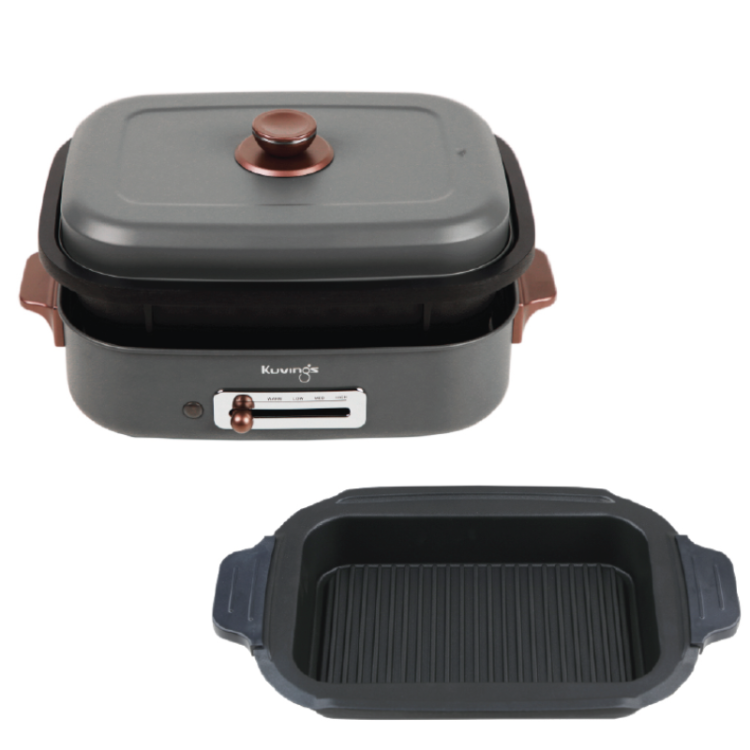 Lẩu điện phủ gốm Ceramic đa năng Kuvings 2 trong 1 KMG-200B với thiết kế 2 lồng của lẩu điện tách rời nên có thể được sử dụng thay thế cho nhau phù hợp với nhu cầu nấu nướng của bạn cũng như thuận tiện cho việc vệ sinh. Ngoài ra, với thiết kế rãnh thoát dầu trên bề mặt lồng nướng cho lượng dầu mỡ dư chảy xuống theo rãnh trong khi nướng giúp thức ăn không chứa nhiều dầu mỡ mà còn thuận tiện trong việc vệ sinh sản phẩm sau mỗi lần sử dụng.