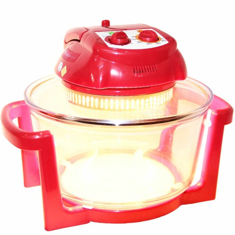 Lò nướng thủy tinh đèn Halogen hiệu Tiger Queen nướng đối lưu từ 60 – 250ºC, đồng hồ cài đặt 60 phút, quạt 1 tốc độ, có chế độ tự vệ sinh của lò nướng, chậu thủy tinh Pháp, màu đỏ. Có nhiều chức năng : Quay, nướng, nướng bánh, hấp, khử nước, xả đông, chiên chân không….