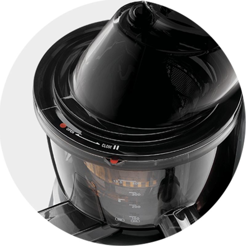 - Sau đó, mở nắp thông minh để rót nước ép ra ly và thưởng thức.