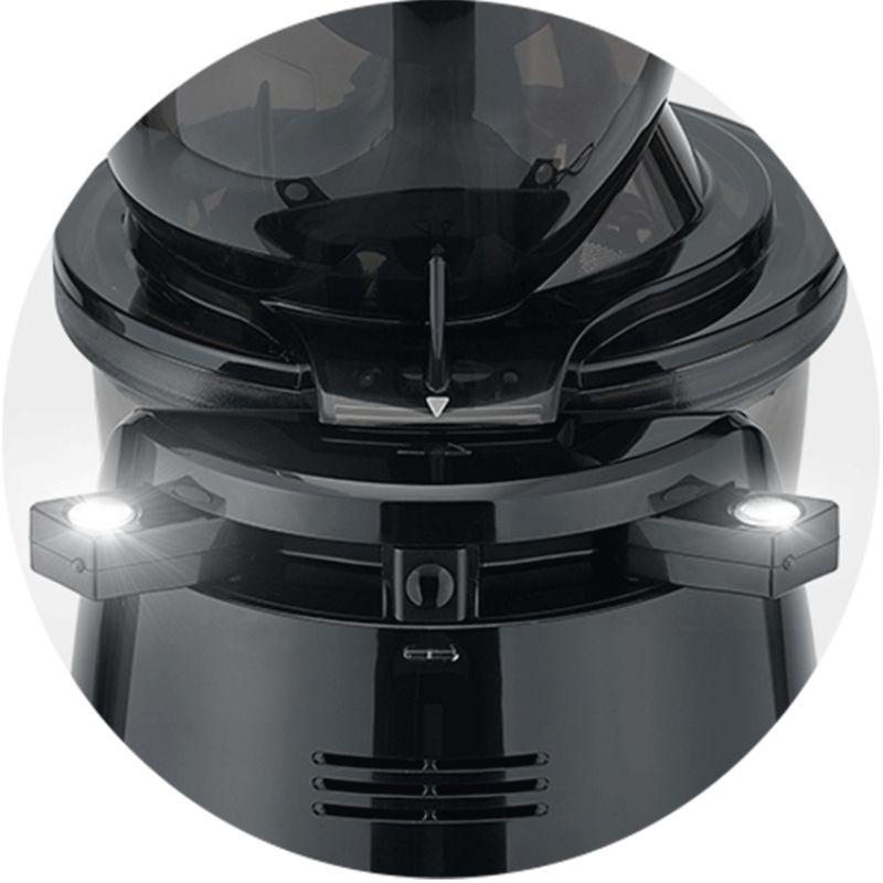 - Bật công tắc cho máy ép hoạt động. Lưu ý : Dùng lưới ép cho chức năng ép trái cây và nắp thông minh luôn đóng khi đang ép để mùi vị các nguyên liệu hòa quyện lại với nhau.