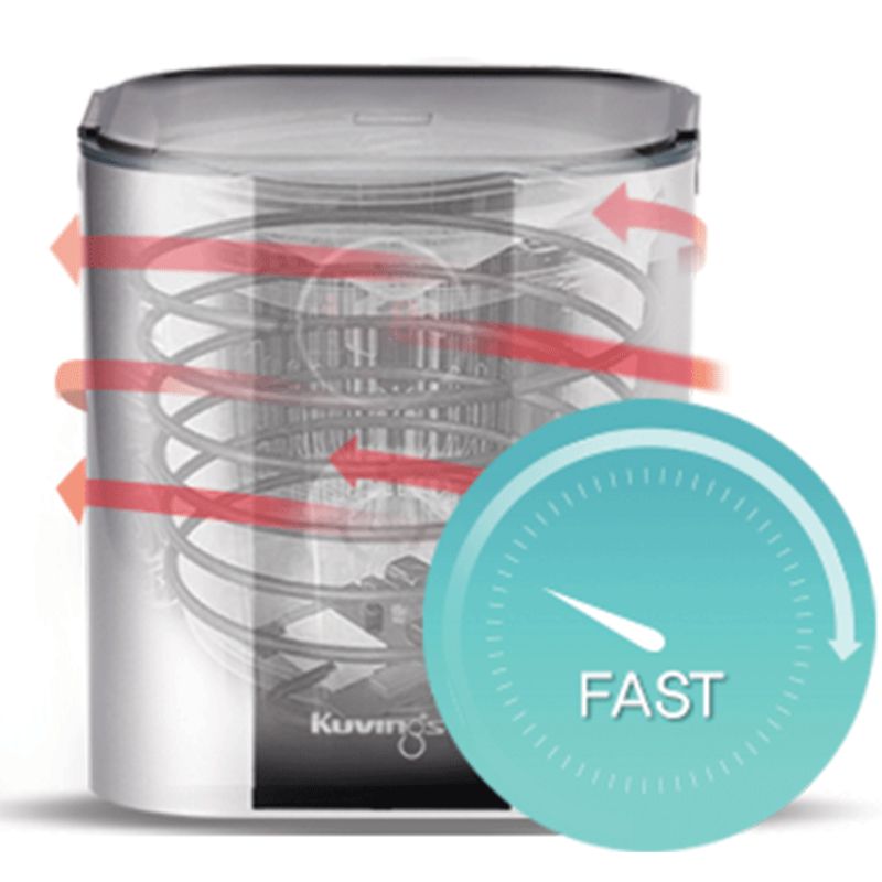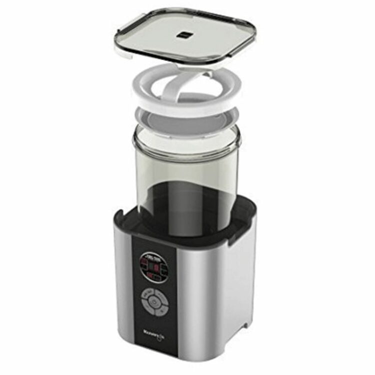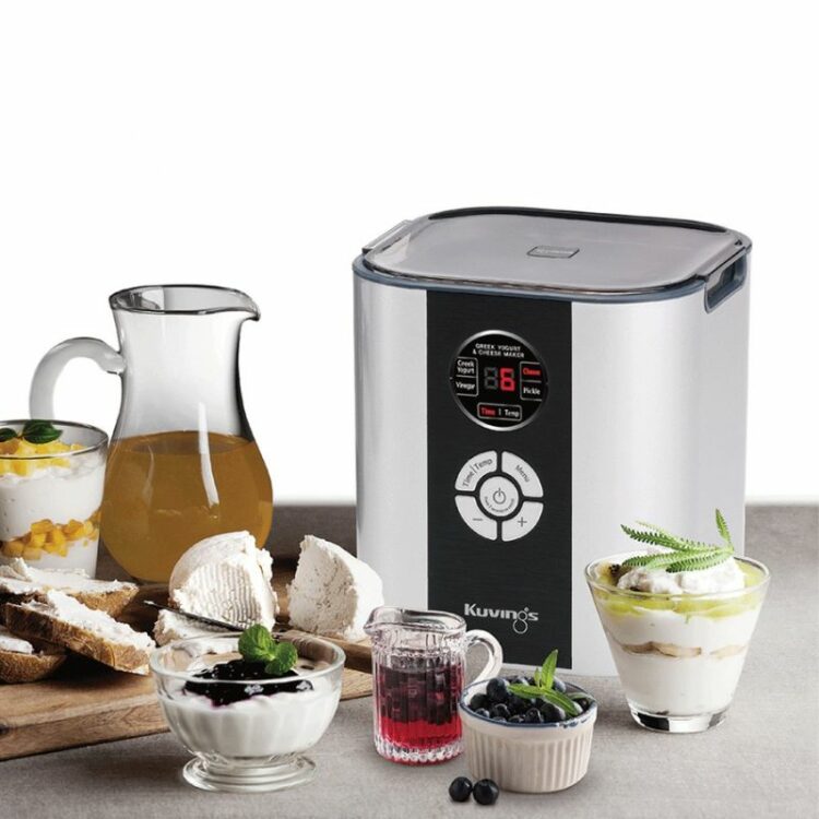 Máy làm sữa chua và pho mát hiệu Kuvings KGC-712CB với công nghệ khử hơi nước bằng nhiệt tuần hoàn quay tự động khi ủ dễ dàng tách váng sữa ra khỏi chất lỏng khi làm sữa chua, pho mát và một số loại giấm cho ra các món tráng miệng nguyên chất rất đặc biệt.