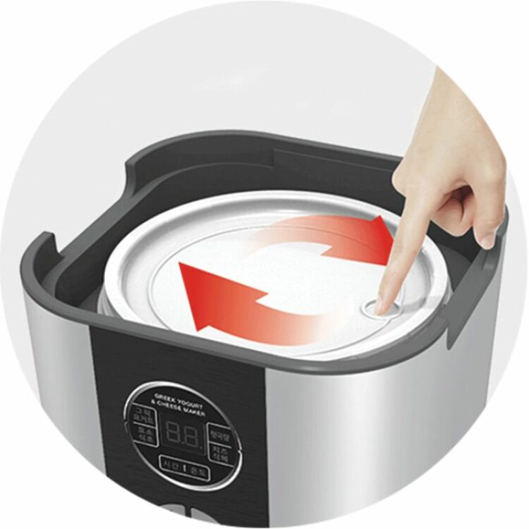 - Để làm sữa chua Hy Lạp, sau khi máy hoạt động xong, bạn cho sữa chua vào lưới lọc pho mát (lưới lọc đã được đặt vào lồng ủ tặng kèm), sau đó đậy nắp lồng ủ khóa lại và để ngay vào tủ lạnh sau 6 giờ đồng hồ và thưởng thức.