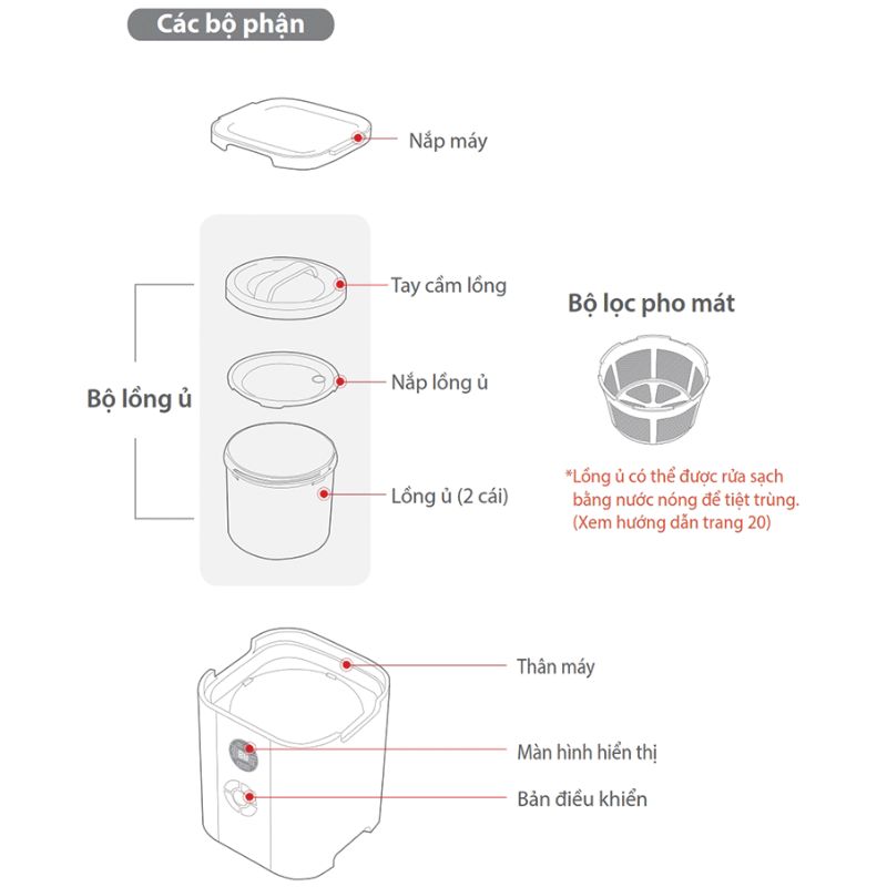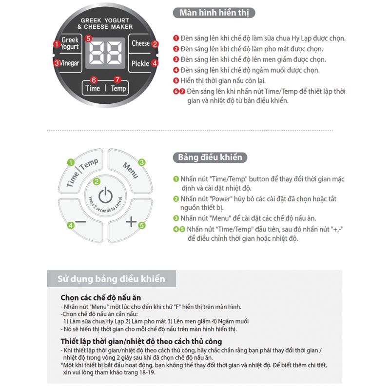 - Có sách hướng dẫn công thức làm các loại sữa chua, pho mát, sirô, dấm, dưa muối, rượu trái cây…., lưới lọc pho mát và ủ thay thế tặng thêm kèm theo sản phẩm