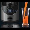 - Lấy cối xay sinh tố ra khỏi máy và mở nhẹ van cao su chân không của nắp cối xay để xả áp suất trước khi mở nắp. Rót sinh tố ra ly và thưởng thức.