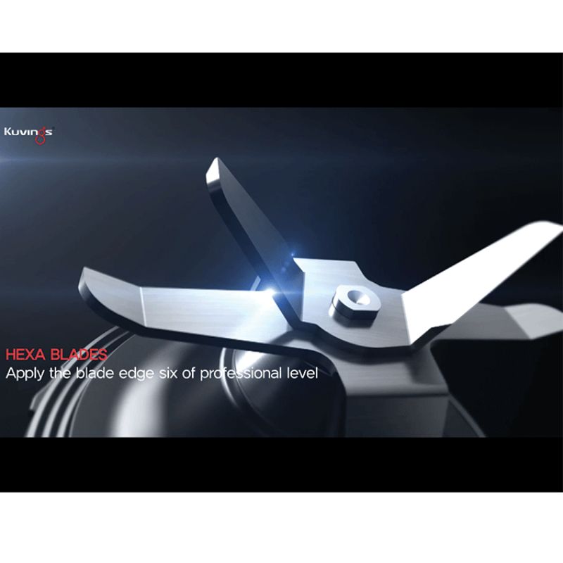 Máy xay sinh tố hút chân không Kuvings KV-200S với lưỡi dao bằng thép cao cấp không gỉ, chống ăn mòn, chống bám bẩn được thiết kế 6 lưỡi sắc bén không sinh nhiệt “HEXA BLADES” cùng công nghệ xoay ba chiều (3D) hoạt động mạnh mẽ cho nước sinh tố mịn và không có bọt bong bóng.