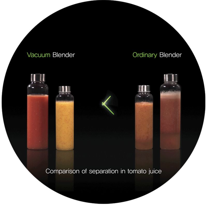 Máy xay sinh tố hút chân không Kuvings KV-200S được tích hợp công nghệ hút chân không “VACUUM” trong khi xay các thành phần nguyên liệu trong môi trường chân không -80kPa (-11.6psi) sẽ hạn chế quá trình oxy hóa và làm chậm quá trình tách nước giúp cho các chất dinh dưỡng trong nguyên liệu được giữ trong một thời gian dài mà vẫn giữ hương vị và màu sắc tự nhiên của nước sinh tố.