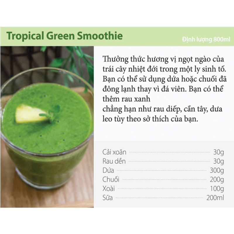 Cách làm sinh tố nhiệt đới màu xanh (800ml) bằng máy xay sinh tố chân không KV-200S: