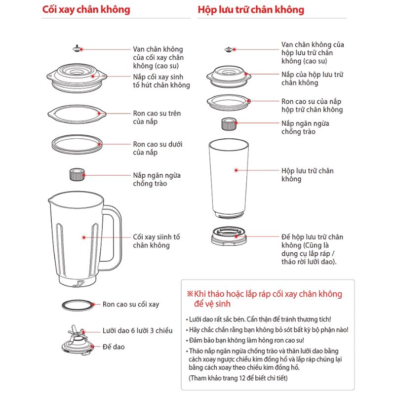 - Lưu ý : van cao su chân không của nắp máy xay sinh tố đã đậy chặt và kín.