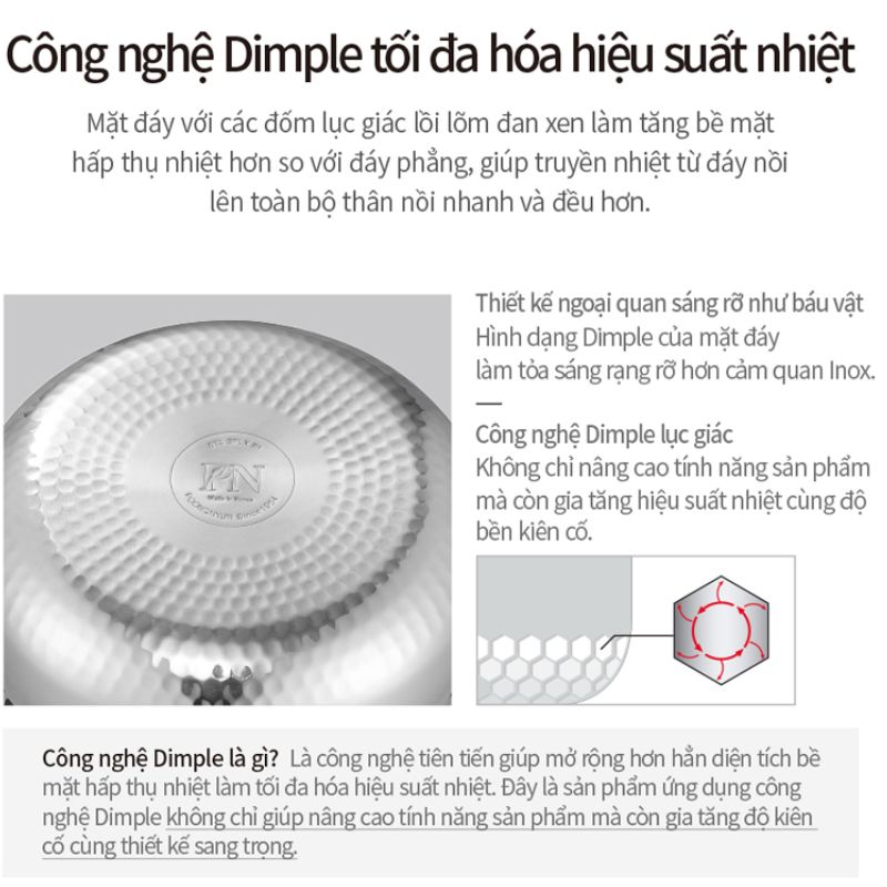 Toàn bộ cấu trúc thép không gỉ cao cấp SUS304 với 3 lớp nguyên khối (đáy và thân) [STS+ALU+STS] dầy 2.6mm của nhà sản xuất thép uy tín “POSCO” và công nghệ đáy “Dimples”, nồi áp suất Inox IH POONGNYUN [PN] HNHPC-06(IH) tối đa hóa hiệu suất dẫn và giữ nhiệt làm thức ăn chín đều cực nhanh mà thức ăn không bị cháy khét, tiết kiệm thời gian cũng như chi phí nhiên liệu nấu và giảm sự phá hủy chất dinh dưỡng trong quá trình nấu ăn một cách hiệu quả. Hơn thế nữa, với công nghệ nấu áp suất khoa học để tăng điểm sôi của nước lên 120ºC và chịu được sự gia nhiệt lên đến 400ºC làm thức ăn chín mềm nhanh hơn so với khi nấu bằng nồi áp suất điện.