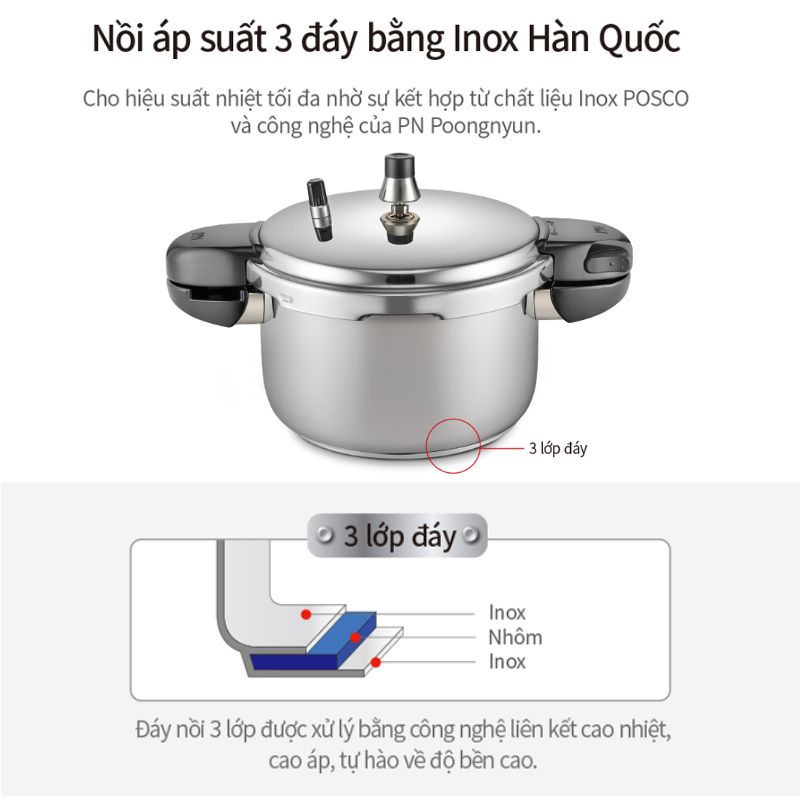 NỒI ÁP SUẤT INOX ĐÁY 3 LỚP IH POONGNYUN [PN] HNVPC-06(IH)