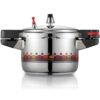 Toàn bộ cấu trúc thép không gỉ cao cấp 430 với 3 lớp đáy dầy 3.6mm, nồi áp suất Inox POONGNYUN (PN) BSPC-22CV tối đa hóa hiệu suất dẫn và giữ nhiệt làm thức ăn chín đều cực nhanh mà thức ăn không bị cháy khét, tiết kiệm thời gian cũng như chi phí nhiên liệu nấu và giảm sự phá hủy chất dinh dưỡng trong quá trình nấu ăn một cách hiệu quả. Hơn thế nữa, với công nghệ nấu áp suất khoa học để tăng điểm sôi của nước lên 120ºC và chịu được sự gia nhiệt lên đến 400ºC làm thức ăn chín mềm nhanh hơn so với khi nấu bằng áp suất điện.
