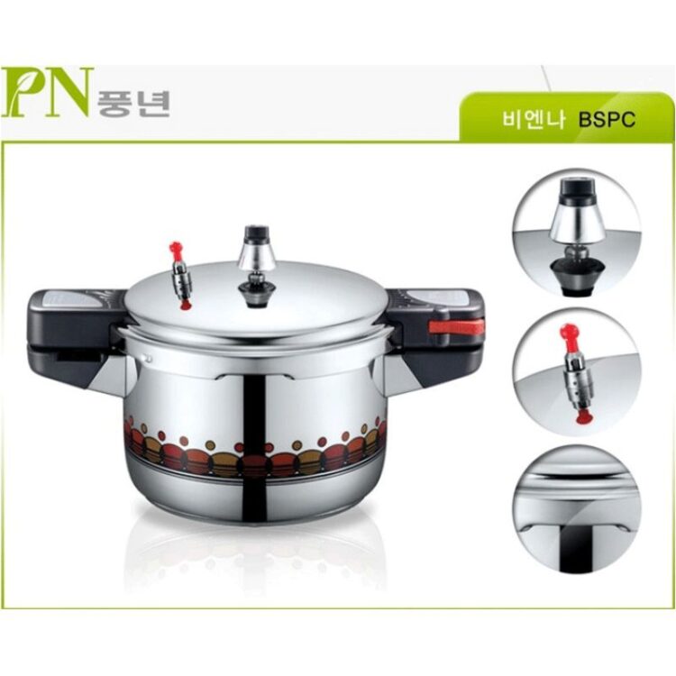 Nồi áp suất Inox POONGNYUN (PN) BSPC-22CV dung tích 4.5 lít nhập khẩu từ Hàn Quốc thu hút ánh nhìn với thiết kế theo phong cách Châu Âu hài hòa với cảm giác sang trọng, hiện đại và tinh tế tăng độ thẩm mỹ cho nhà bếp cũng như phù hợp với nhu cầu của người sử dụng tiện lợi cho việc chế biến các món ăn khác nhau cho gia đình như hầm, luộc, kho, hấp, nấu cháo, nấu cơm, nấu cơm trộn, nấu gạo lức hay chế biến những món yêu cầu độ mềm, cần nấu trong thời gian ngắn. Bên cạnh đó, lớp Inox không gỉ bên ngoài giữ nồi áp suất lâu phai màu và không mau dơ.