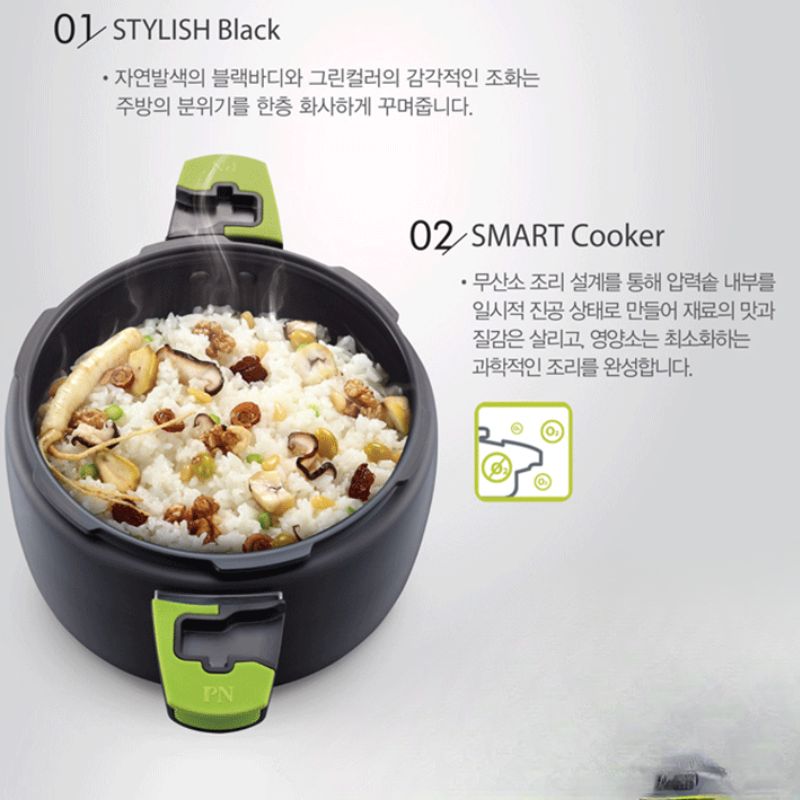 Nồi áp suất nhôm chống dính POONGNYUN (PN) BPNPC-10 dung tích 5.5 lít nhập khẩu từ Hàn Quốc thu hút ánh nhìn với thiết kế theo phong cách Châu Âu hài hòa với cảm giác sang trọng, hiện đại và tinh tế tăng độ thẩm mỹ cho nhà bếp cũng như phù hợp với nhu cầu của người sử dụng tiện lợi cho việc chế biến các món ăn khác nhau cho gia đình như hầm, luộc, kho, hấp, nấu cháo, nấu cơm, nấu cơm trộn, nấu gạo lức hay chế biến những món yêu cầu độ mềm, cần nấu trong thời gian ngắn. Bên cạnh đó, với công nghệ tráng men hiện đại nhất “Hard Anodized” không tróc sơn, chống gỉ sét, chống ăn mòn bên ngoài nồi giữ nồi áp suất lâu phai màu và không mau dơ.
