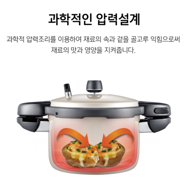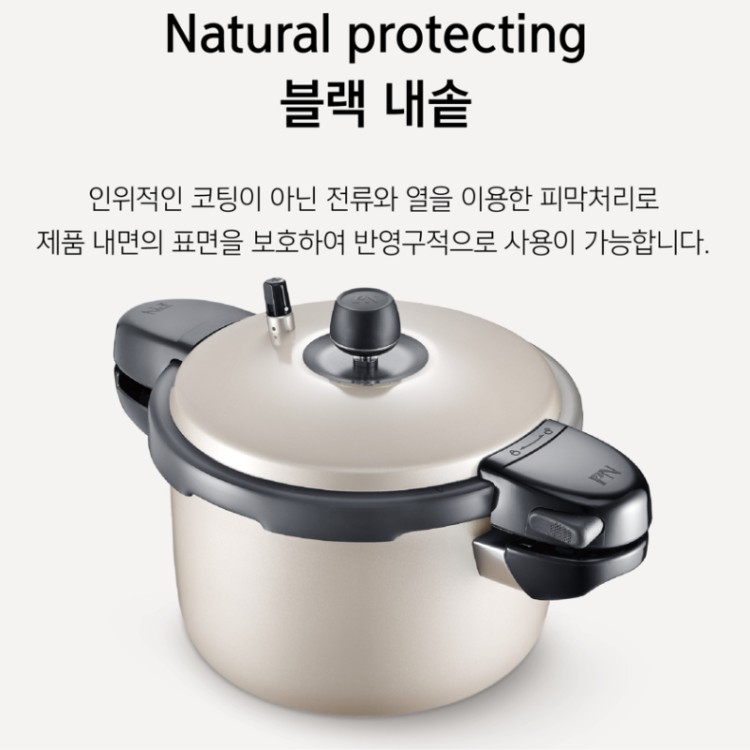 Toàn bộ cấu trúc nhôm tinh khiết nguyên khối cao cấp dầy 3.5mm cực kỳ bền và không bong tróc, nồi áp suất nhôm chống dính IH POONGNYUN BEDPC-06(IH) tối đa hóa hiệu suất dẫn và giữ nhiệt làm thức ăn chín đều cực nhanh mà thức ăn không bị cháy khét, tiết kiệm thời gian cũng như chi phí nhiên liệu nấu và giảm sự phá hủy chất dinh dưỡng trong quá trình nấu ăn một cách hiệu quả. Hơn thế nữa, với công nghệ nấu áp suất khoa học để tăng điểm sôi của nước lên 120ºC và chịu được sự gia nhiệt lên đến 400ºC làm thức ăn chín mềm nhanh hơn so với khi nấu bằng nồi áp suất điện.