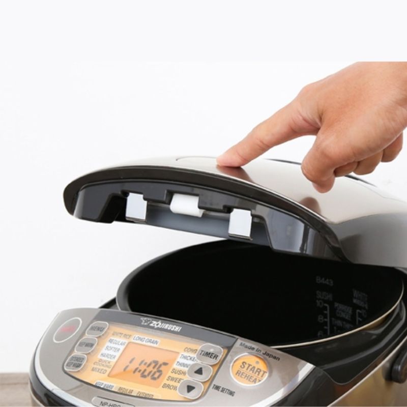 Nồi cơm điện tử cao tần áp suất Zojirushi NP-NP-HRQ10 với thiết kế nắp trong, nắp thoát hơi và lồng nồi có thể tháo rời giúp bạn thuận tiện trong việc vệ sinh sản phẩm sau mỗi lần sử dụng. Không chỉ vậy, nồi cơm điện tử cao tần áp suất Zojirushi có tích hợp quai xách cách nhiệt, chắc chắn sẽ giúp bạn dễ dàng với việc cầm nắm, di chuyển sản phẩm mà không bị nóng cũng như rất tiện lợi trong khi sử dụng với thiết kế tích hợp lỗ ghim và ngăn đựng muỗng xới cơm trực tiếp bên phải thân nồi cơm.