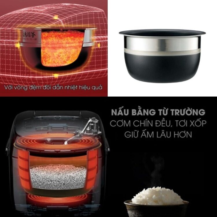 Công nghệ nấu cơm cảm ứng từ “IH” đối lưu nhiệt và thiết kế nắp chống trào thông minh