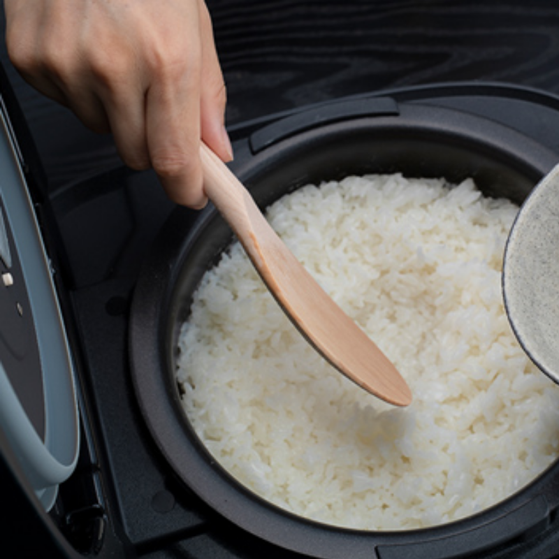 Có cốc đong gạo, muỗng xới cơm tự đứng (chịu nhiệt lên đến 120ºC), muỗng múc cháo/soup (chịu nhiệt lên đến 120ºC) kèm theo sản phẩm