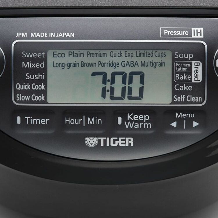Nồi cơm điện tử cao tần áp suất Tiger JPM-H18V với thiết kế bảng điều khiển màn hình LCD điều chỉnh nút nhấn Menu thông minh “lùi và tới” mà không cần nhấn theo thứ tự tuần hoàn, hiện đại, đơn giản và dễ dàng sử dụng với 20 chức năng : 16 chức năng nấu cơm [ Nấu tiết kiệm điện, Nấu gạo trắng, Nấu cơm cực ngon, Nấu cơm nhanh, Nấu cơm siêu tốc, Nấu gạo hạt dài, Nấu gạo lức, Nấu cháo, Nấu cháo gạo lức, Nấu gạo lức nảy mầm, Nấu gạo trộn ngũ cốc, Nấu gạo nếp, Nấu cơm trộn, Nấu gạo sushi ], Hầm nhanh / chậm, Nấu Soup, Lên men và nướng bánh mì, Làm bánh ngọt và giữ ấm đáp ứng những bữa cơm đa dạng cho gia đình bạn. Không chỉ vậy, chế độ giữ ấm cơm tự động lên đến 24 giờ mà cơm không bị khô rất tiện lợi và tiết kiệm chi phí cho người nội trợ không có nhiều thời gian nấu cơm.