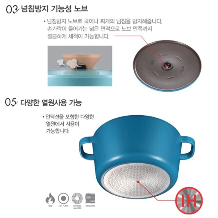 Nồi quánh Ceramic POONGNYUN (PN) Series Bliss Nordic BNPT-18B(IH) với nắp được thiết kế theo hệ thống “Self-based” chống trào và hạn chế tối đa lượng hơi nước thoát ra ngoài giữ hương vị và dinh dưỡng trong món ăn đặc biệt là những thực phẩm kỵ khí. Ngoài ra, miệng nồi được thiết kế uốn cong mềm mại giúp bạn đổ thức ăn ra đĩa mà không bị văng tung tóe.