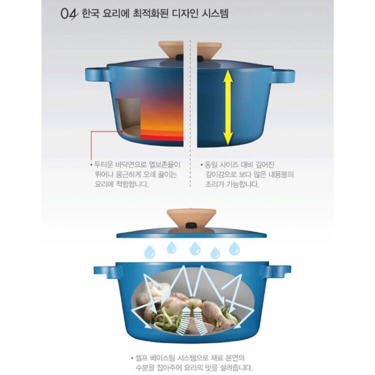 Toàn bộ cấu trúc làm bằng chất liệu nhôm tinh khiết nguyên khối phủ 2 lớp gốm Ceramic dầy 2.5mm cực kỳ bền và không bong tróc, nồi quánh Ceramic POONGNYUN (PN) Series Bliss Nordic BNPT-18B(IH) tối đa hóa hiệu suất dẫn và giữ nhiệt làm thức ăn chín đều cực nhanh mà thức ăn không bị cháy khét, tiết kiệm thời gian cũng như chi phí nhiên liệu nấu và giảm sự phá hủy chất dinh dưỡng trong quá trình nấu ăn một cách hiệu quả đặc biệt là các món ăn hầm và luộc.