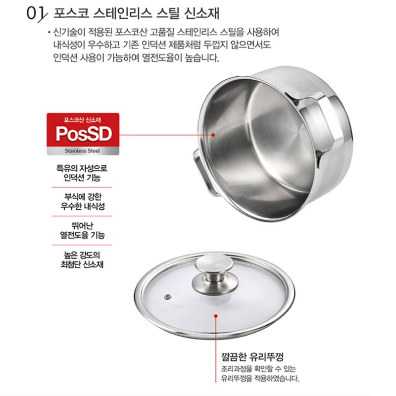 Nồi nhà bếp (loại nồi quánh) Inox từ tính cao cấp hiệu PoongNyun Series Luce 1 lớp nguyên khối SUS329 (18/10) chống gỉ sét, chống ăn mòn, giữ và gia nhiệt lâu hơn giúp thức ăn mau chín tiết kiệm thời gian và nhiên liệu, thiết kế nắp kiếng cường lực chống trào chịu nhiệt, tay cầm dài chống nóng, sử dụng trên bếp gas, bếp hồng ngoại, bếp từ, gồm 02 món (1 nồi quánh và 1 nắp kiếng 16cm).