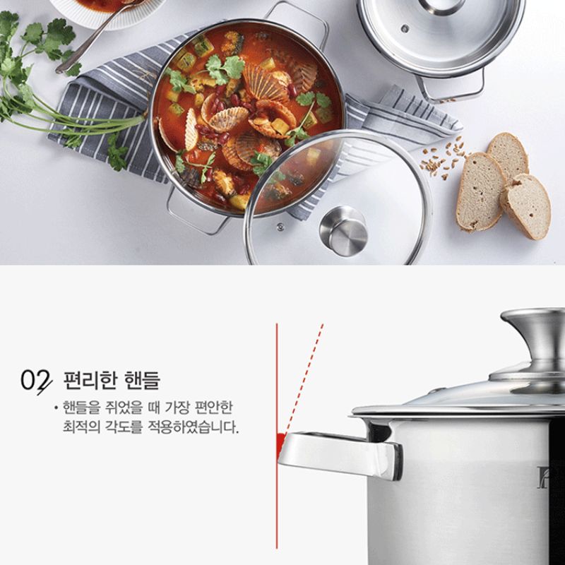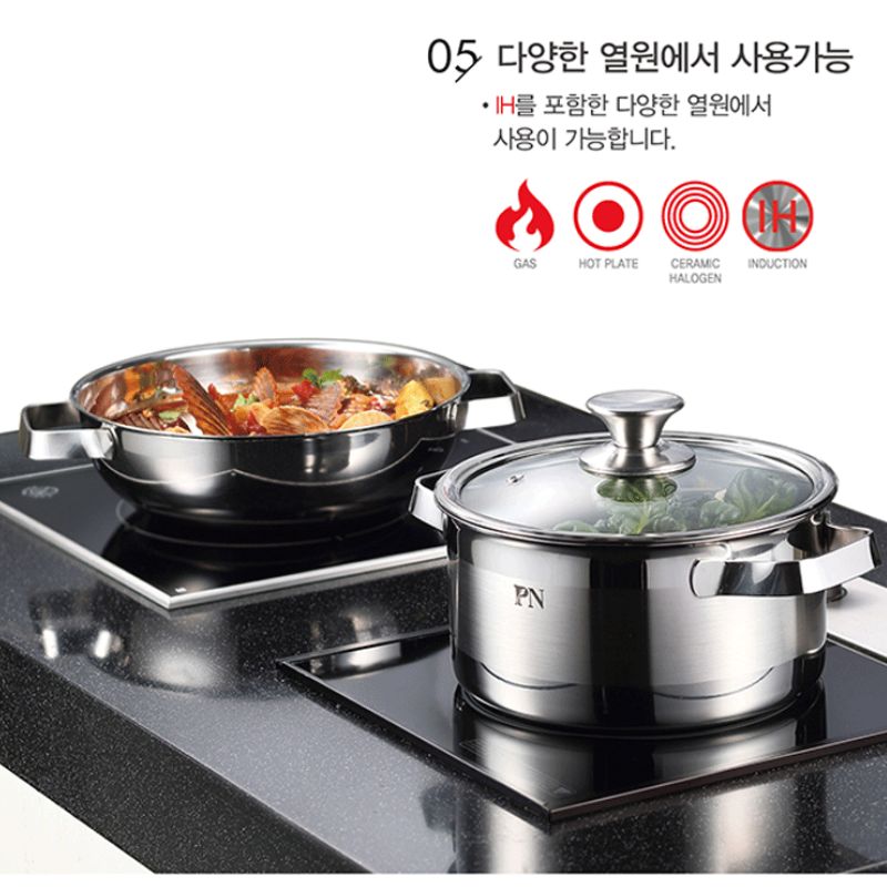 Toàn bộ cấu trúc thép không gỉ cao cấp SUS329 (18/10) với 1 lớp nguyên khối, nồi quánh Inox POONGNYUN (PN) Series Luce LCPT-16B(IH) tối đa hóa hiệu suất dẫn và giữ nhiệt làm thức ăn chín đều cực nhanh mà thức ăn không bị cháy khét, tiết kiệm thời gian cũng như chi phí nhiên liệu nấu và giảm sự phá hủy chất dinh dưỡng trong quá trình nấu ăn một cách hiệu quả đặc biệt là các món ăn hầm và luộc.