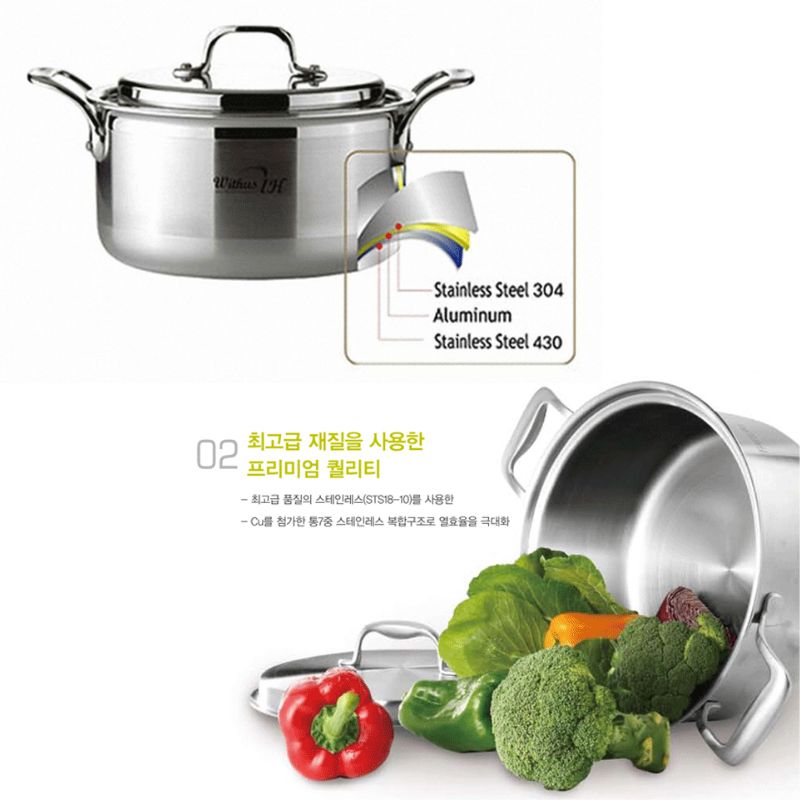 Toàn bộ cấu trúc thép không gỉ cao cấp SUS304 (18/10) 3 lớp nguyên khối thân và đáy dầy 2.5mm, xửng hấp Inox POONGNYUN (PN) Series Withus WTPIH-ST 24C tối đa hóa hiệu suất dẫn và giữ nhiệt làm thức ăn chín đều cực nhanh, tiết kiệm thời gian cũng như chi phí nhiên liệu nấu và giảm sự phá hủy chất dinh dưỡng trong quá trình hấp thức ăn một cách hiệu quả.