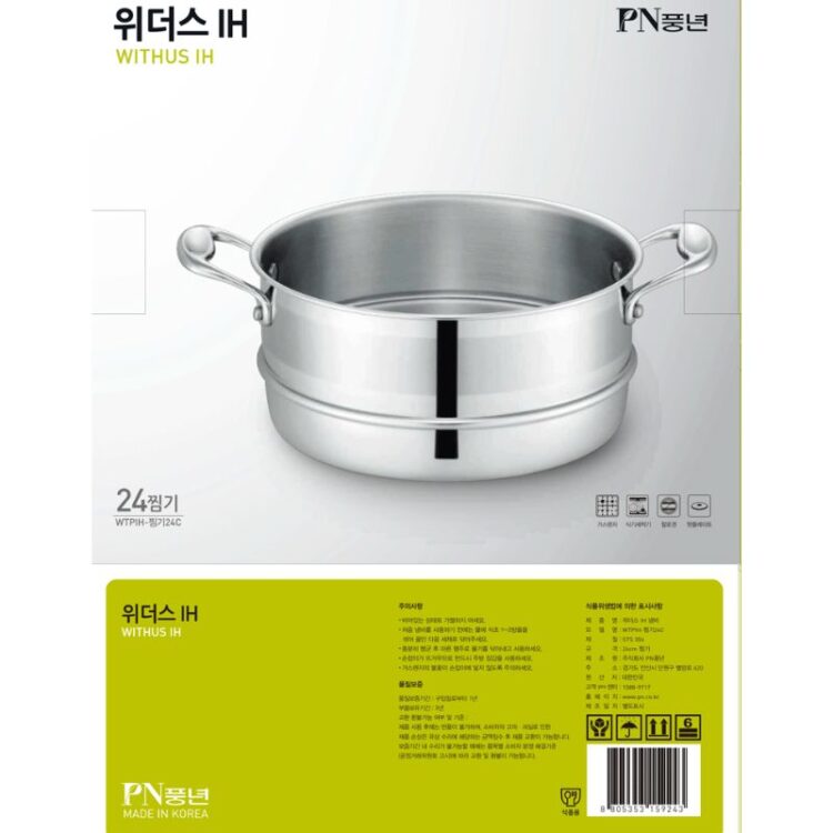 Xửng hấp Inox POONGNYUN (PN) Series Withus WTPIH-ST 24C đường kính 24 cm nhập khẩu từ Hàn Quốc thu hút ánh nhìn với thiết kế theo phong cách Châu Âu hài hòa với cảm giác sang trọng, hiện đại và tinh tế tăng độ thẩm mỹ cho nhà bếp cũng như phù hợp với nhu cầu của người sử dụng tiện lợi cho việc chế biến các món hấp. Bên cạnh đó, lớp Inox không gỉ bên ngoài giữ nồi lâu phai màu và không mau dơ.